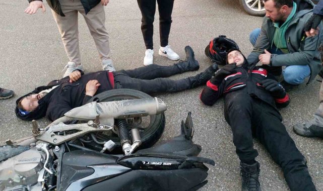 Kaza, Canik ilçesi Karşıyaka Mahallesi İlkadım Bulvarı'nda dün meydana geldi. Edinilen bilgiye göre, Şerif A. idaresindeki 55 EB 163 plakalı hafif ticari araç, Ahmet İ.'nın kullandığı 55 ABR 831 plakalı motosikletle çarpıştı. Kazada motosiklet sürücüsü ile yanındaki Erkan G. yaralandı. Yaralılar, ambulanslarla hastanelere kaldırılarak tedavi altına alındı. Kaza anı ise anbean güvenlik kamerasına yansıdı.