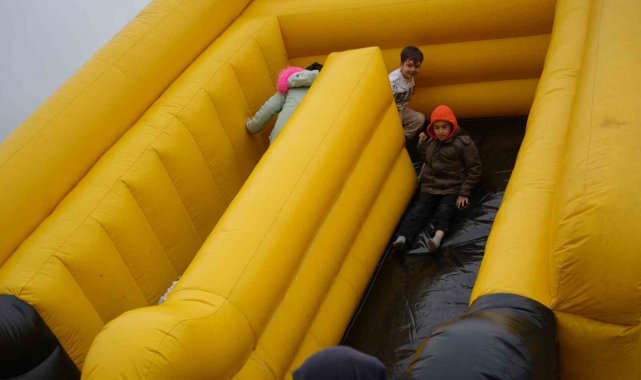 Samsun'da 23 Nisan Ulusal Egemenlik ve Çocuk Bayramı dolayısıyla düzenlenen şenlikte çocuklar gönüllerince eğlendi. Şişme oyun parklarında vakit geçiren çocuklar çalınan müziklerle dans etti.