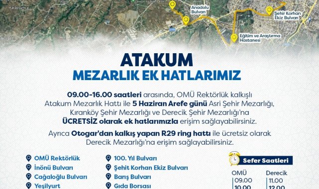 "Bayramlar; sevdiklerimizle kucaklaştığımız, gönüllerin bir olduğu, özlemlerin dindiği en özel zamanlardır. Bu anlamlı günlerde hemşehrilerimizin sevdiklerine kolayca ulaşabilmeleri, büyüklerini ziyaret edebilmeleri ve bayramın manevi atmosferini birlikte yaşayabilmeleri için arefe günü ve Kurban Bayramı boyunca (5, 6, 7, 8 ve 9 Haziran) tüm otobüs ve tramvay seferlerimiz ücretsiz olacaktır. Ayrıca kabir ziyareti yapmak isteyen hemşehrilerimiz için arefe günü İlkadım Mezarlık Hattı ve Atakum Mezarlık Hattı üzerinden Asri Mezarlığı, Kıranköy Şehir Mezarlığı ve Derecik Şehir Mezarlığı'na ekstra seferlerle ücretsiz ulaşım hizmeti sunacağız. Bu vesileyle Kurban Bayramımızı en içten dileklerimle kutluyor; bu mübarek günlerin sağlık ve huzur içinde geçmesini temenni ediyorum."