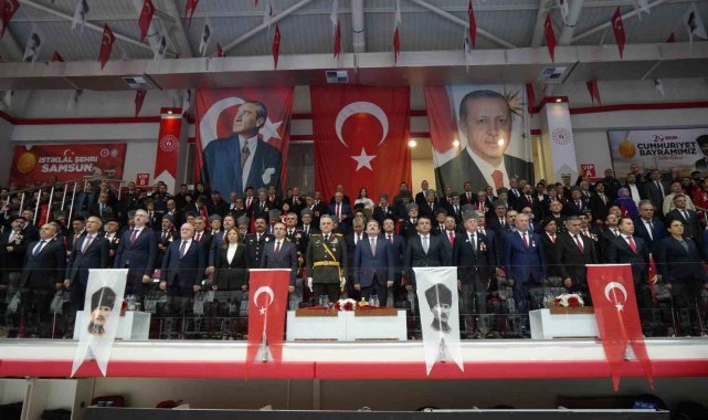 29 Ekim Cumhuriyet Bayramı kutlamaları Samsun'da olumsuz hava şartları nedeniyle Cumhuriyet Meydanı'ndan alınarak, Mustafa Dağıstanlı Spor Salonu'nda yapıldı. Tören ilk olarak Samsun Valisi Orhan Tavlı, Samsun Garnizon Komutanı Gazi Tümgeneral Davut Ala ve Samsun Büyükşehir Belediye Başkanı Halit Doğan'ın halkın bayramı kutlaması ile başladı. Ardından saygı duruşunda bulunulup, İstiklal Marşı okundu. Törende Cumhurbaşkanı Recep Tayyip Erdoğan'ın mesajı da okundu.