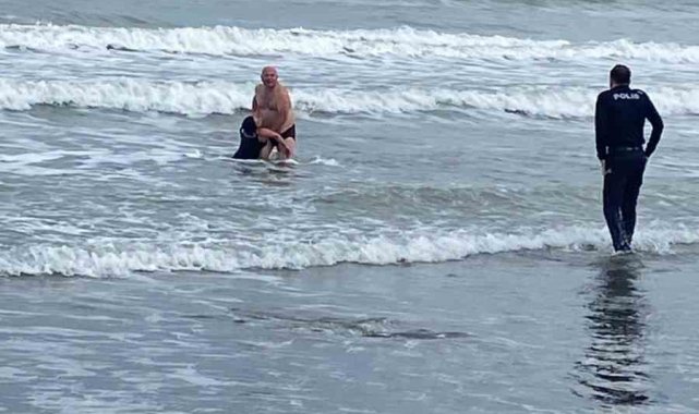 Samsun'da Karadeniz'in azgın sularına atlayarak intihara kalkışan kadın, denize atlayan polis memuru tarafından kurtarıldı.