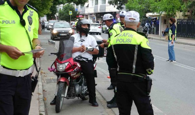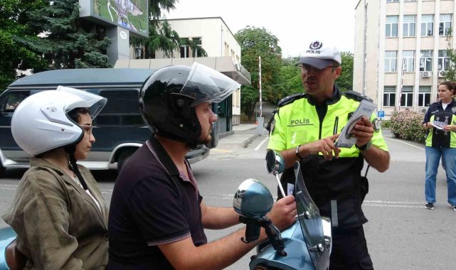 Trafik polisleri, durdurdukları her sürücüye şu mesajı verdi: "Trafikte kaskım kafamda, kurallar aklımda."