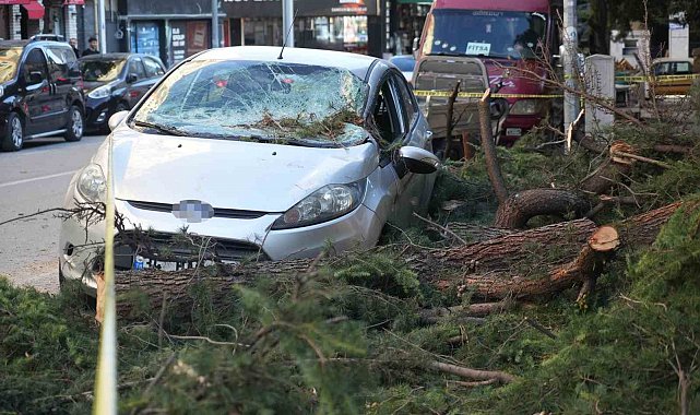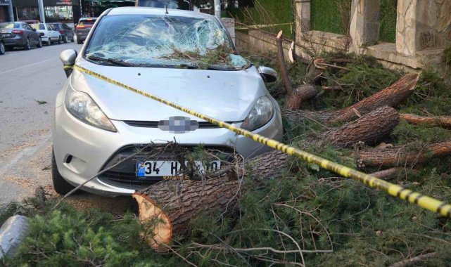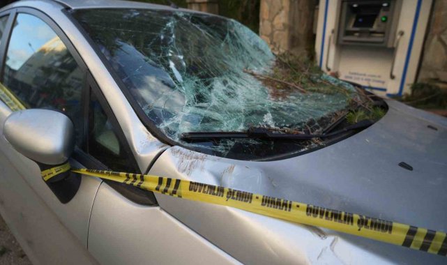 SAMSUN (İHA) – Samsun'da gece saatlerinde etkili olan şiddetli fırtınada devrilen ağaçtan kopan parçalar, İlkadım ilçesinde park halindeki bir otomobilin üzerine düşerek ön camının patlamasına, kaporta ve kapılarında ciddi hasar oluşmasına neden oldu.