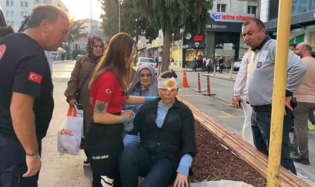 Samsun'da Cumhuriyet Meydanı girişinde bulunan açılır-kapanır bariyer, yayanın kafasına çarparak yaralanmasına yol açtı.