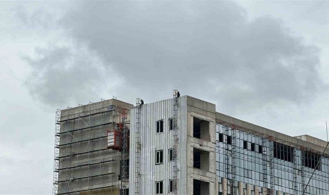 Samsun'da hastane inşaatında işçi eylemi: Çatıya çıktılar