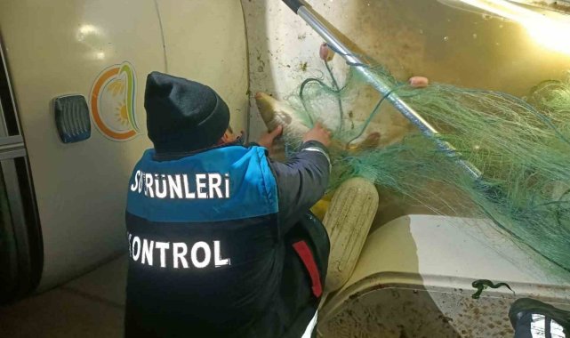 Samsun'da yapılan denetimlerde 600 metrelik yasa dışı ağ ele geçirilirken, 60 kilogram canlı sazan balığı yeniden suya bırakıldı.