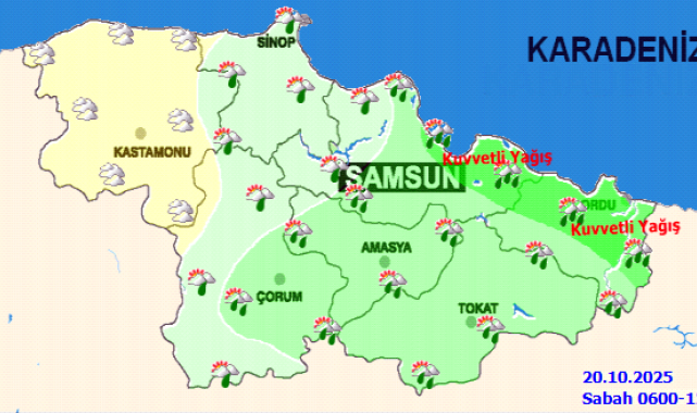 MGM tarafından yapılan açıklamada, "Bölge genelinde devam eden aralıklı sağanak ve gök gürültülü sağanak yağışların, Samsun'un kıyı kesimleri ile Ordu çevrelerinde yerel olarak kuvvetli olması beklendiğinden; ani sel, su baskını, ulaşımda aksama, yıldırım ve yağış anında kuvvetli rüzgâr gibi olumsuzluklara karşı dikkatli ve tedbirli olunması gerekmektedir" ifadeleri kullanıldı.