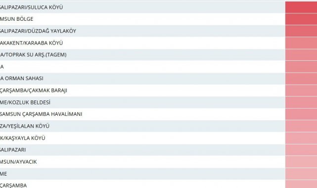 Samsun, son 24 saatte Türkiye genelinde en fazla yağış alan iller arasında Giresun, Kastamonu, Trabzon, Sakarya ve Artvin'in ardından 6'ncı sırada yer aldı.