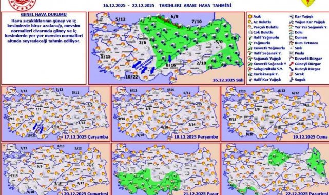 Öte yandan MGM 10. Bölge Müdürlüğü Samsun'da hava sıcaklıklarını 3-5 derece daha düşmesini tahmin ediyor. Yarın ve Perşembe günü gündüz sıcaklığının 4 dereceye kadar düşmesi beklenirken bugün için kuvvetli yağış uyarısı da yapıldı. MGM tarafından yapılan uyarıda, "Sabah saatlerinden sonra kıyı kesimlerde yer yer kuvvetli yağışlar beklenmektedir. Yağışların bölgenin yükseklerinde yer yer kuvvetli kar şeklinde olması beklendiğinden yaşanabilecek buzlanma, don, kuvvetli rüzgarla tipi ile ulaşımda aksamalar gibi olumsuzluklara karşı dikkatli ve tedbirli olunmalıdır" denildi.