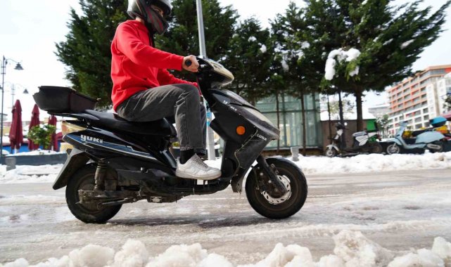 Samsun'da yoğun kar yağışı nedeniyle kısıtlama getirilen motokurye ve motosikletlerin trafiğe çıkış kısıtlaması kaldırıldı.