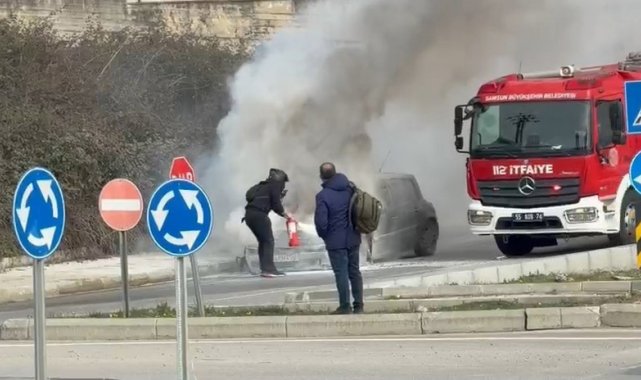 Samsun'un İlkadım ilçesinde seyir halindeki bir otomobil, bilinmeyen bir nedenle alev aldı. Yangında araç kullanılamaz hale geldi.