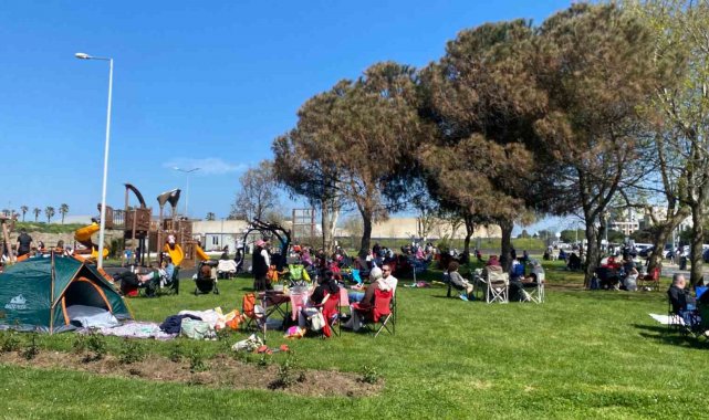 Bazı vatandaşlar kumsala çadır kurarak dinlenmeyi tercih ederken, kimileri de kamp sandalyeleriyle sahilde oturup güneş ve denizin tadını çıkardı. Parklara giden aileler ise çocuklarıyla birlikte oyun oynayıp keyifli anlar yaşadı. Kumda oynayan çocuklar ve piknik yapan aileler, hafta sonunun tadını doyasıya çıkardı.