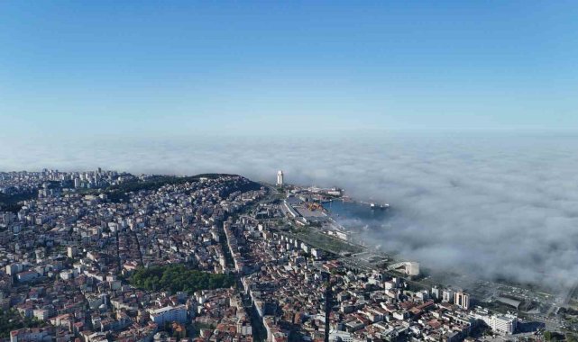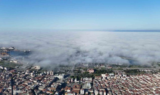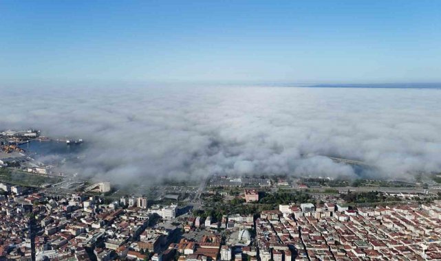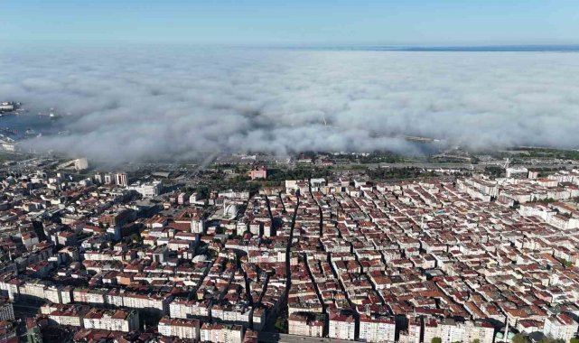 Sıra dışı sis manzarası, dron ile görüntülendi. Şehri yongan gibi örten sis, kartpostallık manzaralar sundu. Karadeniz kıyılarını görünmez hale getiren ve toz bulutu gibi görünen sis, vatandaşları şaşırttı.