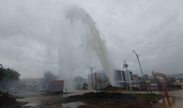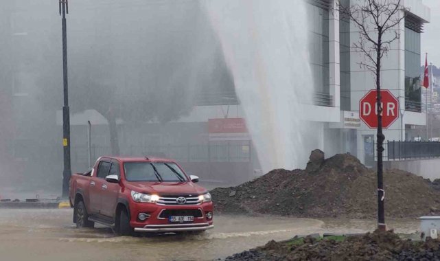 Samsun'da su borusu patladı, sular 60 metre gökyüzüne fışkırdı