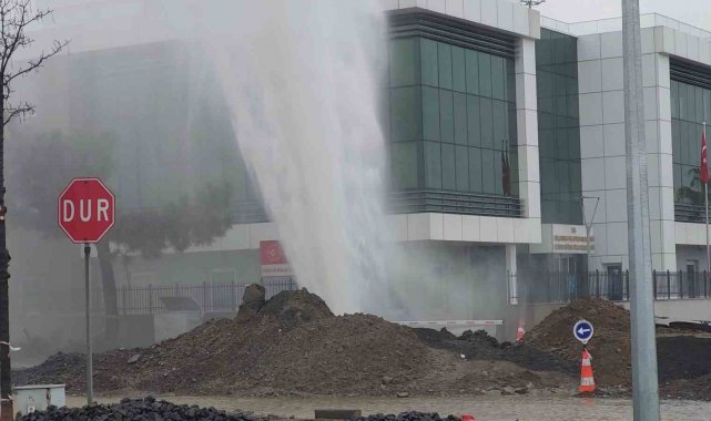 Samsun'da altyapı çalışması esnasında su borusu patladı. Borudaki sular yaklaşık 60 metre yükselerek şelaleyi andıran görüntü oluşturdu.
