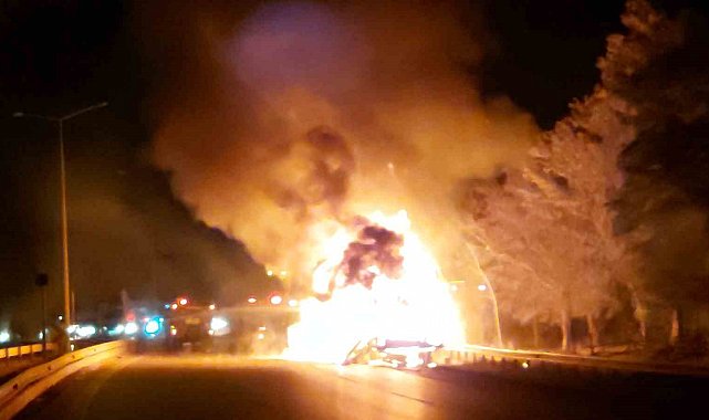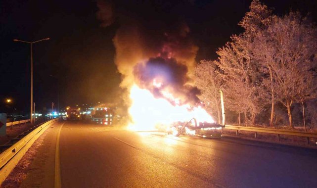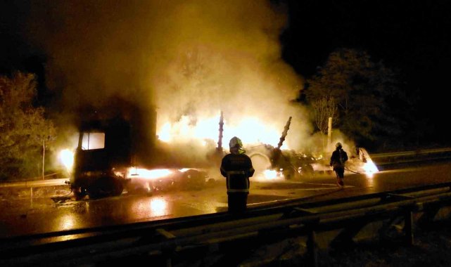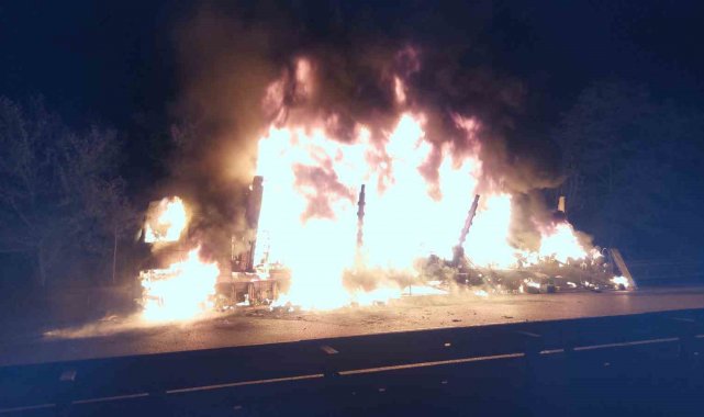 Samsun'da tiner yüklü tır alev alev yanıyor