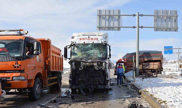 Çarpışmanın etkisiyle savrulan kamyonet, refüjde bulunan yön tabelası direğine çarparak durabildi. Kazayı tır sürücüsü yara almadan atlatırken, kamyonet sürücüsü Yadigar Demiral ile araçta yolcu olarak bulunan Sema Demirel (47) ise yaralandı.