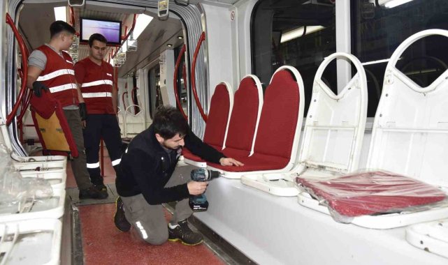 Samsun Büyükşehir Belediyesi tarafından başlatılan çalışmalar ile şehirde en çok tercih edilen toplu taşıma aracı olan tramvayların yolcu koltukları yenileniyor.