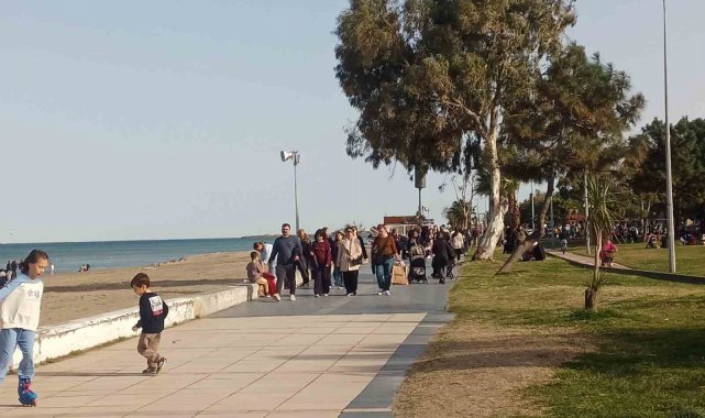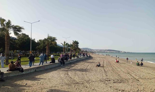 Aileleriyle sahile gelenler çim alanlarda oturarak güneşlendi, çocuklar oyun alanlarında eğlendi. Sahilde oluşan hareketlilik dikkat çekerken, bazı vatandaşların hatıra fotoğrafı çektirdiği görüldü.