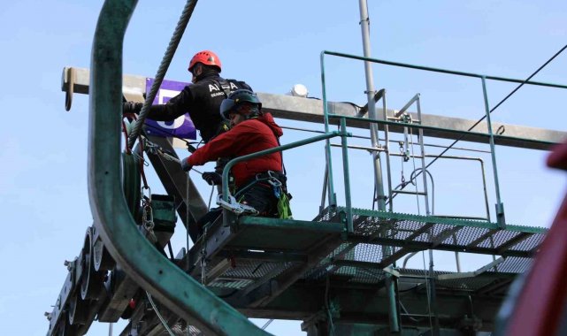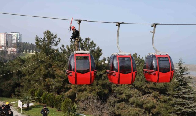 Samsun'da yenilenen 'teleferik hattı' için özel kurtarma eğitimi