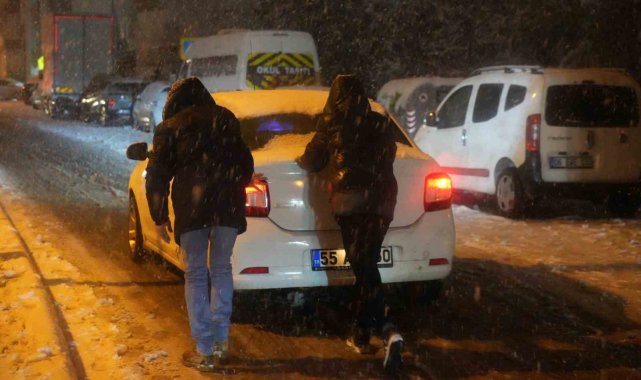 Samsun'da yoğun kar yağışı sürücülere zor anlar yaşattı