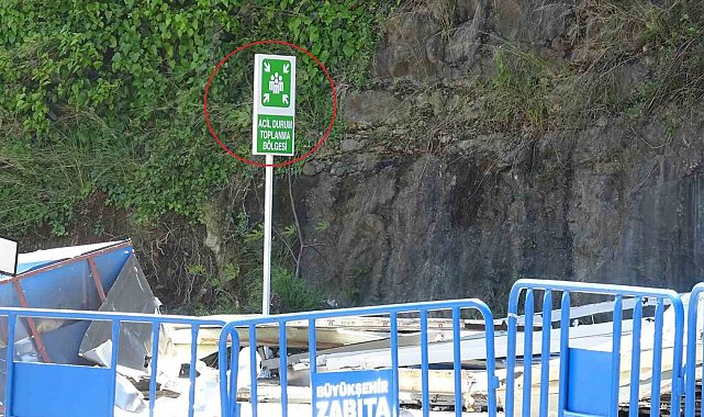 Samsun'da 2'si çocuk 3 kişinin hayatını kaybettiği heyelan faciasında, olay yerinde bulunan "Acil Durum Toplanma Bölgesi" tabelası dikkat çekti.