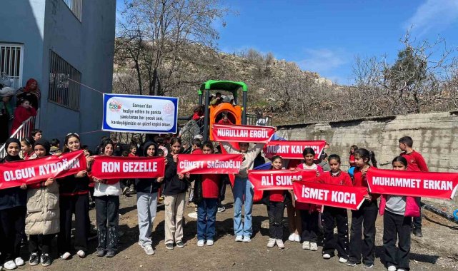 "Samsun'dan Diyarbakır'a Ömür Boyu Dostluk Köprüsü Projesi" kapsamında Samsun'dan Çermik ilçesine gelen heyet, beraberlerinde getirdikleri sevgi ve hediyelerle çocukların yüzünü güldürdü. Projenin en somut ve heyecan verici adımı olarak, Bahçeköy İmam Hatip Ortaokulu bahçesine Samsunlu kardeş okulun ve yardımsever iş insanlarının destekleriyle modern bir oyun parkı kuruldu. Bugün tamamlanan kurulumun ardından çocuklar, yeni parklarının tadını doyasıya çıkarmaya başladı. Misafir ekip, sadece bir park değil, aynı zamanda öğrencilere dağıttıkları çeşitli hediyelerle de kardeşlik bağlarını pekiştirdi.