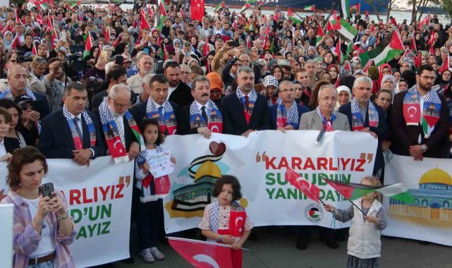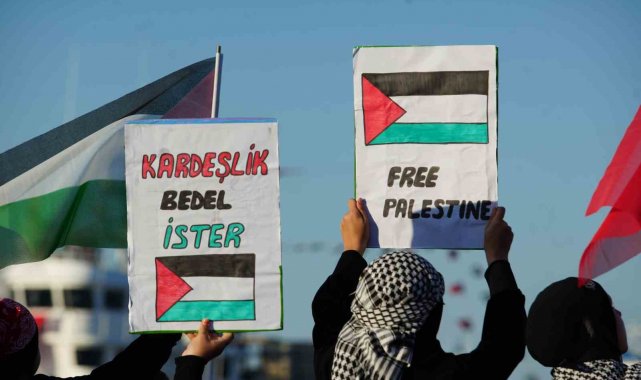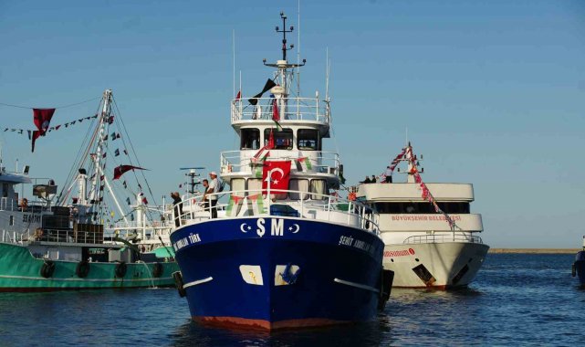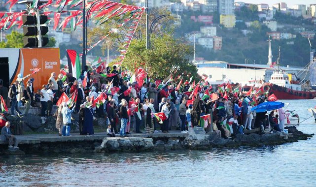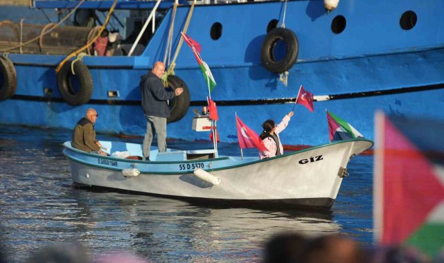 Samsun'da onlarca gemi ve tekne, Filistin'e destek amacıyla Samsun Limanı'nda bir araya geldi. Türk ve Filistin bayraklarıyla donatılan tekneler sirenler çalarak denizde kortej oluştururken, karadan yüzlerce vatandaş da ellerinde bayraklarla eyleme destek verdi.