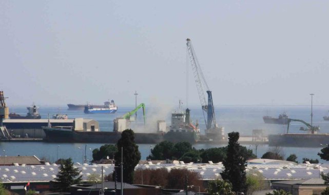 Samsun'da limanda gemiye yapılan yükleme sırasında oluşan yoğun toz bulutu, rüzgarın etkisiyle kent merkezine taşındı.