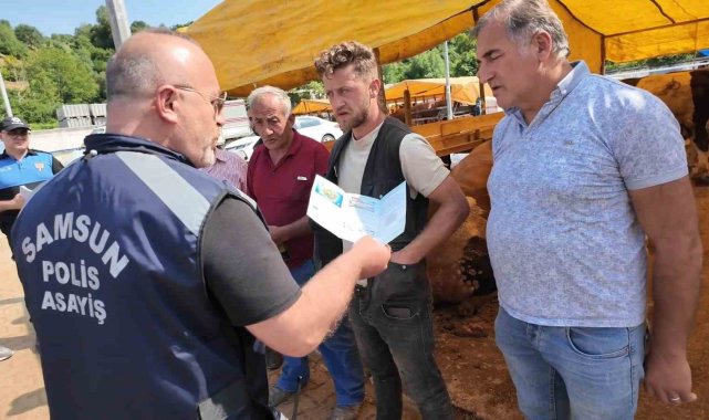 Samsun İl Emniyet Müdürlüğü'ne bağlı Toplum Destekli Polislik, Asayiş ve Kaçakçılık ve Organize Suçlarla Mücadele Şube Müdürlüğü ekipleri tarafından Kurban Bayramı tedbirleri kapsamında hayvan pazarlarında bilgilendirme yapıldı.