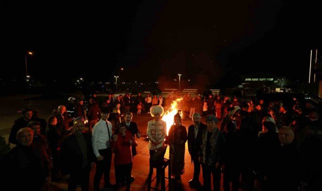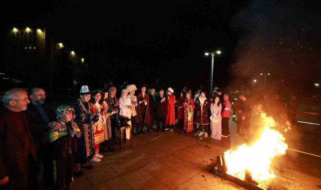 Samsun'da protokol, öğrencilerle birlikte Nevruz ateşi yaktı.