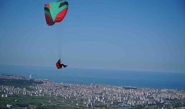 Samsun'da, 19 Mayıs Atatürk'ü Anma, Gençlik ve Spor Bayramı kutlamaları kapsamında düzenlenen yamaç paraşütü gösterileri gökyüzünü şenlendirdi. Çevre illerden gelen yamaç paraşütü sporcuları, gökyüzünde Türk bayraklarıyla uçuş gerçekleştirdi.