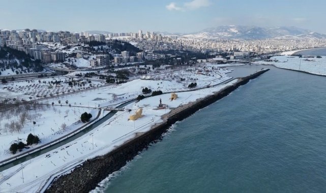 Samsun'da kar fırtınasının ardından şehirde adeta buz devri yaşanırken, havadan çekilen görüntülerde ise tablo gibi manzaralar ortaya çıktı. Son 96 yılın en soğuk günlerini geçiren şehir merkezi ve sahillerde her yer dondu.