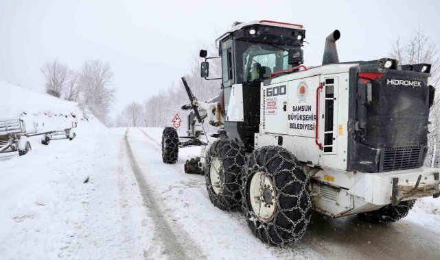 Samsun Büyükşehir Belediyesi karla mücadele çalışmalarına devam ediyor. 293 personel ve 203 araçla sahada olan Büyükşehir, kar nedeniyle kapanan yolları ulaşıma açıyor.