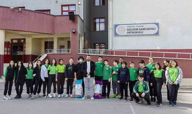 Samsun'da ortaokul öğrencileri yaptıkları süs eşyalarını satarak elde ettikleri gelirle deprem bölgesindeki sokak hayvanlarına mama aldı.