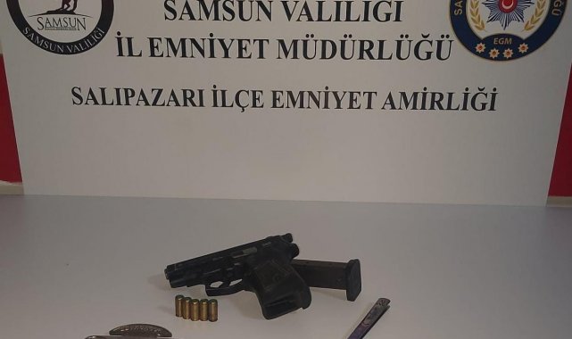 İl Emniyet Müdürlüğü ekipleri, il genelinde huzur ve güven ortamının devamını sağlamak, suç ve suçlularla mücadele, aranan şahıs ve araçların yakalanması, suç işleme amacındaki şahısların caydırılması amacıyla denetimlerini sürdürüyor. Bu kapsamda Salıpazarı ilçesinde gerçekleştirilen uygulamada, şüphe üzerine durdurulan bir araçta 2 şahsın üzerinden 1 adet kurusıkı tabanca, şarjör ve 5 adet kurusıkı tabanca mermisi, 1 adet kelebek tabir edilen bıçak 1 adet muşta ele geçirildi.