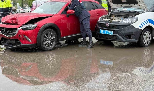 Samsun'un Çarşamba ilçesinde tırın çarptığı otomobil savurularak, polis otosu ve bir araca çarptı. Kazada 6 kişi yaralandı.