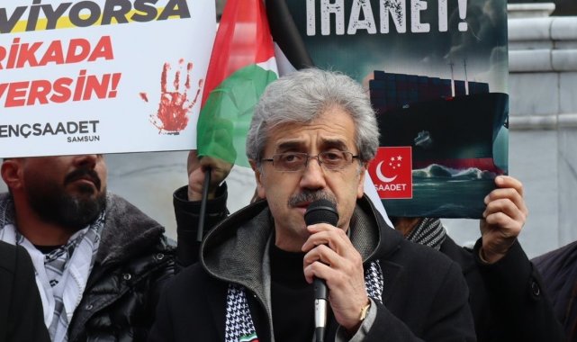 Samsun'da Cuma namazı sonrası Subaşı Meydanı'nda toplanan vatandaşlar, 'Gazze Boşaltılamaz' adlı basın açıklaması gerçekleştirdi. Burada topluluk adına açıklamalarda bulunan Saadet Partisi Samsun İl Başkanı Salih Şen, "Siyonist İsrail tarafından Gazze'de uygulan modern tarihin gördüğü en büyük soykırım tam 467 gün sürdü. Katil İsrail kadın, çocuk, yaşlı demeden tüm uluslararası hukuku yok sayarak 50 binin üzerinde Gazzeli mazlumu katletti. Tüm dünyanın gözleri önünde yaşanan bu soykırımda hastaneler, okullar ve ibadethaneler hedef alındı. Nazileri aratmayan İsrail'in terörist askerleri, Hitler'i aratmayan katil Netanyahu'nun emri ve emperyalistlerin desteği ile Gazze'yi adeta rehin aldı. İnsanların en temel hak ve hürriyetleri bile yok sayıldı. Hastanelere sığınanlara ölüm yağdırıldı. Yüz binlerce mazlum açlık, susuzluk ve soğukla sınandı. En sonunda ise yerlerinden, yurtlarından göçe maruz kaldılar. Uluslararası mahkemeler tarafından 'soykırım' suçu işlediği tescillenen katil Netanyahu'nun, ABD'ye yaptığı ziyaret ve ardından ABD Başkanı Donald Trump'la düzenlenen basın toplantısı, kanlı planların şekil değiştirdiğini göstermiştir. Dünyayı ABD'nin oyun sahası olarak gören ABD Başkanı Trump, söz konusu toplantıda bir kez daha Gazze'nin insansızlaştırılmasına değinmiştir. Bu plana göre Gazzeliler, Ürdün ya da Mısır'a sürgün edilecek ve ABD gerekirse Gazze'ye asker gönderecektir. Yani deniyor ki; 'Biz mücahitleri yenemedik, bütün vahşete rağmen Gazze'yi teslim alamadık, meydanda kaybettik ama masada kazanacağız.' Ant olsun ki havadan, karadan ve denizden kuşattığınız, yok etmeye çalıştığınız, tüm suçlara rağmen zafer ilan edemediğiniz Gazze, masada da size teslim olmayacaktır. Gazzeli mazlumlar bu süslü cümlelere kanmayacak, pamuklara sarıp sarmalanan demir leblebiyi yutmayacaktır. Gazze ne meydanda ne de masada işgale teslim olmayacaktır" dedi.