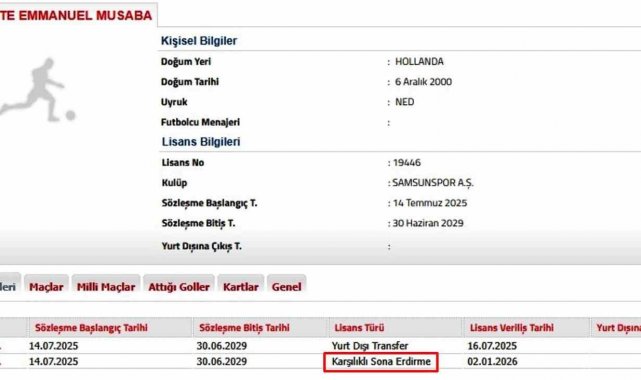 Trendyol Süper Lig ekiplerinden Samsunspor'da ara transfer döneminin açılmasıyla birlikte ilk ayrılık gerçekleşti. Sözleşmesinde 5 milyon euro serbest kalma maddesi bulunan Demokratik Kongo asıllı Hollandalı kanat oyuncusu Anthony Musaba'nın sözleşmesinin feshedildiği, gece saatlerinde Türkiye Futbol Federasyonu'na iletildi. Böylece yeni yılda Samsunspor kadrosundan ayrılan ilk isim Musaba oldu.