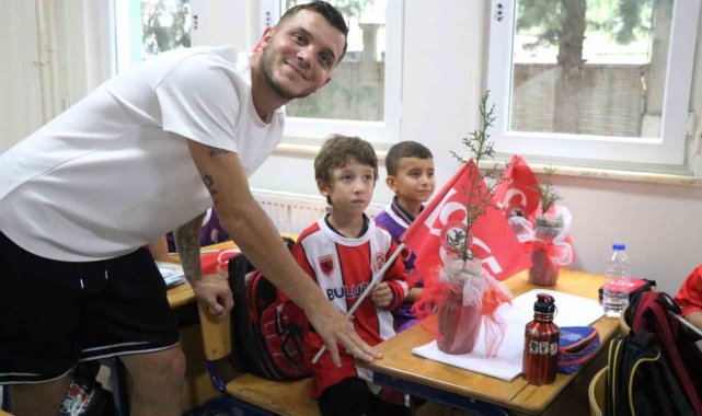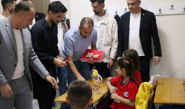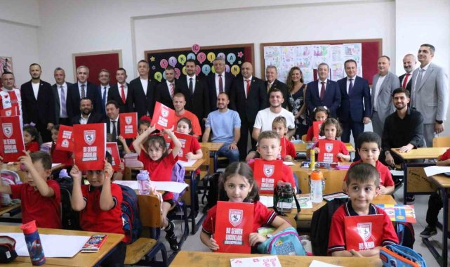 Samsunspor Kulübü'nün "Bu Şehrin Çocukları Samsunsporludur" temasıyla düzenlediği organizasyon kapsamında, 1. sınıfa başlayan öğrencilere defter ve kalem hediye etti.