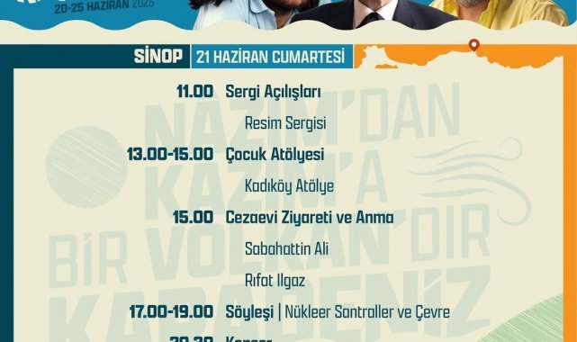 Sanat yolculuğu 21 Haziran'da Sinop'ta devam edecek. Resim sergisi açılışı, Kadıköy Atölye'nin çocuk atölyeleri, tarihi cezaevi ziyareti ve akşam konseri gün boyunca sürecek etkinliklerden bazıları olacak.