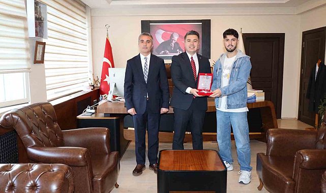 Sanatıyla Karacasu'ya değer katan öğrenci plaketle onurlandırıldı