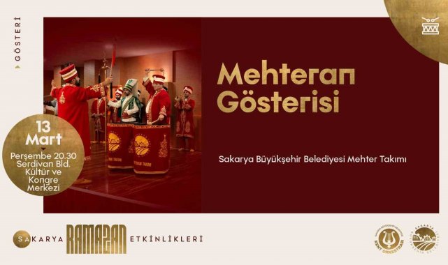Sakarya Büyükşehir Belediyesi Mehter Takımı, 13 Mart Perşembe akşamı saat 20.30'da Serdivan Belediyesi Kültür ve Kongre Merkezi'nde sahne alacak. Osmanlı'nın görkemli askeri bandosu olan mehteran, coşkulu marşlarıyla izleyicilere unutulmaz bir Ramazan akşamı yaşatacak. Sonuncu program ise Ofis Sanat Merkezi'nde (OSM) saat 20.30'da, yazar Jenny Molendyk Divleli, "Ramazan'da Çocuk Olmak" konulu söyleşisi olacak. Çocukların Ramazan'daki manevi yolculuğunu ve aile içindeki yerini ele alacak bu söyleşi, özellikle anne-babalar için ilgi uyandıracak. Büyükşehir Belediyesi'nden yapılan açıklamada, "13 Mart Perşembe günü gerçekleştireceğimiz kültür sanat etkinliklerimize tüm Sakaryalı hemşerilerimizi davet ediyoruz" denildi.