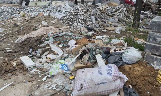 Sanayi sitesindeki boş alanlar mermer atıkları ve inşaat molozlarıyla doldu