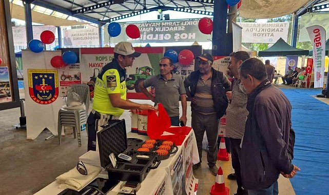 Kapalı pazar alanında gerçekleştirilen fuarda, stant açarak yol kullanıcılarıyla birebir iletişim kuran ekipler, özellikle tarım araçları ve traktör sürücüleri için hayati önem taşıyan konularda bilgilendirmelerde bulundu. Ziyaretçilere genel trafik kurallarının yanı sıra, traktörlerde bulunması gereken ROPS demiri, römorklarda zorunlu olan reflektör ve sarı flaşör lambaların önemi anlatıldı.