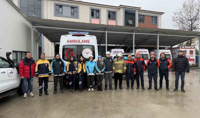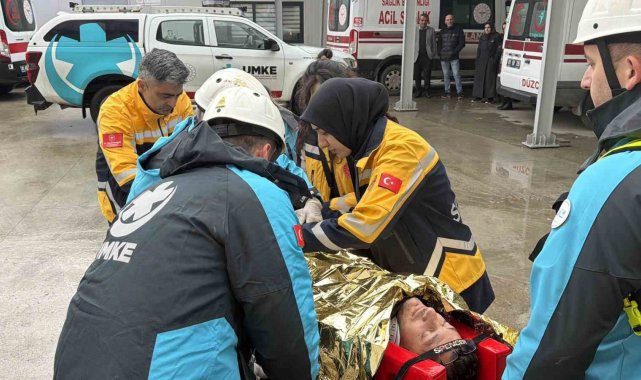 Düzce'de kurum ve kuruluşların muhtemel afetlere karşı hazırlıklı olması amacıyla yürütülen eğitim çalışmaları kapsamında, İl Ambulans Servisi Başhekimliği binasında kapsamlı bir tatbikat gerçekleştirildi. Sağlıkta kalite standartları ve iş sağlığı güvenliği gereği yapılan tatbikatta; itfaiye, UMKE, AFAD ve 112 Acil Sağlık ekipleri ortak bir operasyon yürüttü.