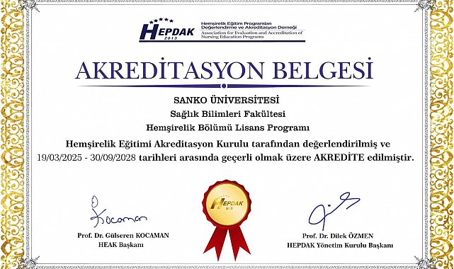 SANKO Üniversitesi Rektörü Prof. Dr. Güner Dağlı, "SBF Hemşirelik programımızın eğitim kalitesinin uluslararası standartlara uygunluğu bir kez daha tescillenmiş oldu" dedi. Prof. Dr. Dağlı, SBF Hemşirelik Programı'nın, eğitim-öğretim faaliyetlerinin kalite ve yeterlik açısından HEPDAK standartlarına göre yapılan değerlendirme sonunda önceden almaya hak kazandıkları iki yıllık akreditasyon belgesi süresinin üç yıl daha uzatılarak toplamda beş yıl akredite olmaya hak kazandığını söyledi.
