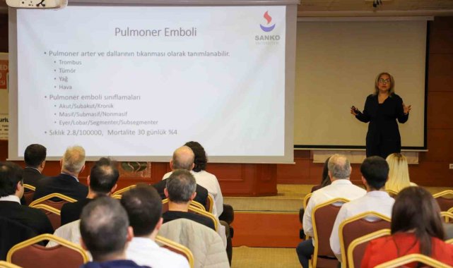 Radyolojinin yıllar içindeki gelişimi ve göğüs hastalıkları ile cerrahiye katkılarını anlatan SANKO Üniversitesi Rektör Yardımcısı Prof. Dr. Metin Bayram'ın başkalığında gerçekleştirilen üçüncü oturumda da SANKO Üniversitesi Hastanesi Girişimsel Radyoloji Uzmanı Doç. Dr. Mehmet Kolu, pulmoner emboliye radyolojik yaklaşımı, tarih gelişimi ve gelecekteki beklentileri anlattı. Hastanede uygulanan tomografi eşliğinde biyopsiler ve hemoptizide embolizasyon işlemlerine de değindi.