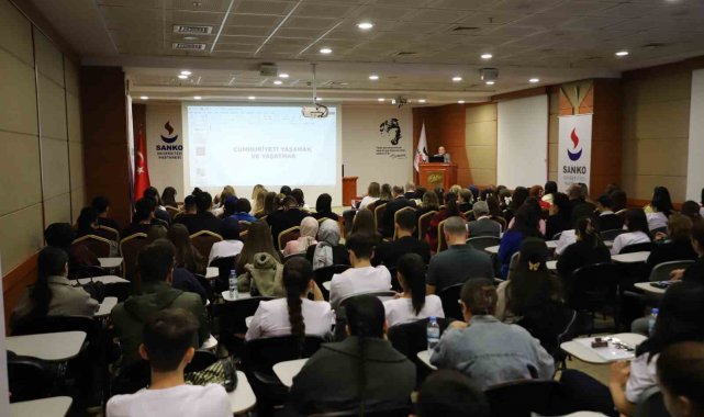 "Cumhuriyeti Yaşamak ve Yaşatmak" konulu sunumunda Türk Milleti'nin, Gazi Mustafa Kemal Atatürk liderliğinde tarih boyunca büyük zaferler kazandığını vurgulayan Dr. Öğr. Üyesi Pekdoğan, Cumhuriyet'in ilanına kadar yaşanan gelişmeleri, imzalanan antlaşmaları tarihler ve belgelerle anlattı.