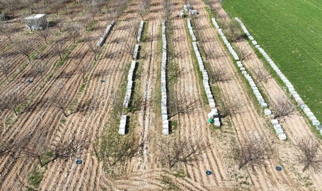 Badem bahçeleri için arıcıları getiriyorlar